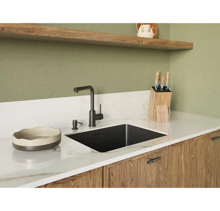 Установка дозатора не вызовет трудностей благодаря отверстию для установки размером 25 мм. Максимальная толщина столешницы, под которую подходит дозатор, составляет 50 мм. Это означает, что он подойдет для большинства стандартных кухонных столешниц.