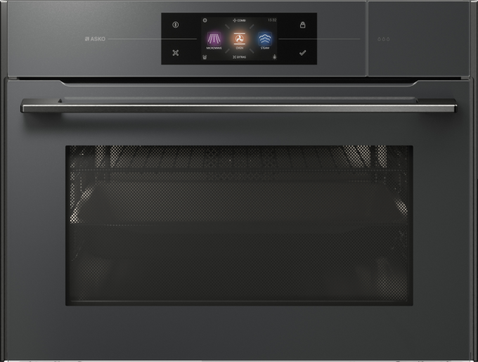 Панель управления представлена сенсорными переключателями: интуитивные касания и яркая индикация режима на TFT дисплее упрощают выбор параметров, таймера и автоматических программ. Модель поддерживает 11 основных способов нагрева, включая верхний и нижний элементы, комбинированный режим с вентилятором, классическую конвекцию, несколько вариантов гриля и расширенные варианты работы с паром: шесть режимов для точного контроля влажности, быстрый разогрев и ECO-режим. Кроме того доступно 132 автоматические программы и функция AutoRoast для автоматического запекания, а также режим SousVide для деликатного приготовления под вакуумом.