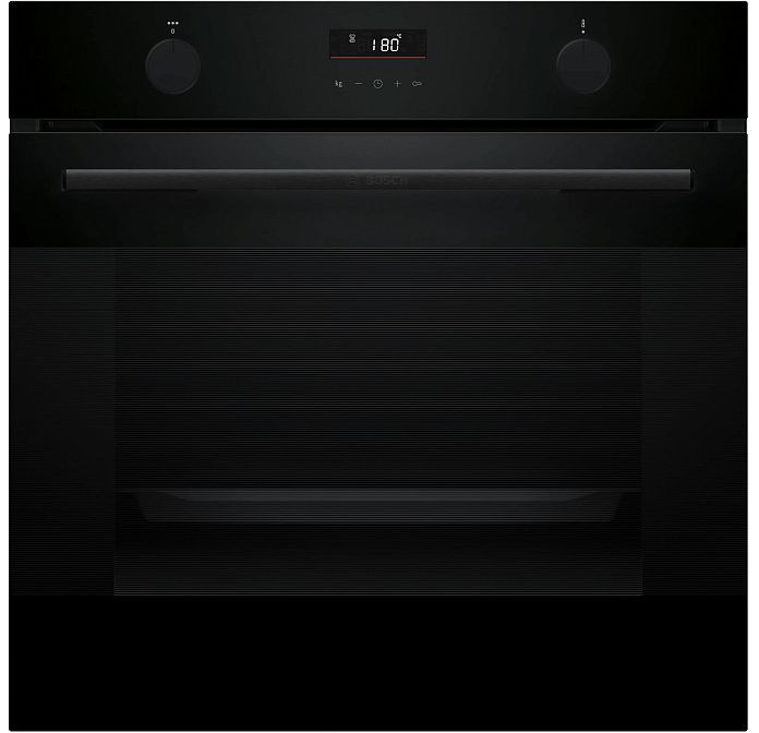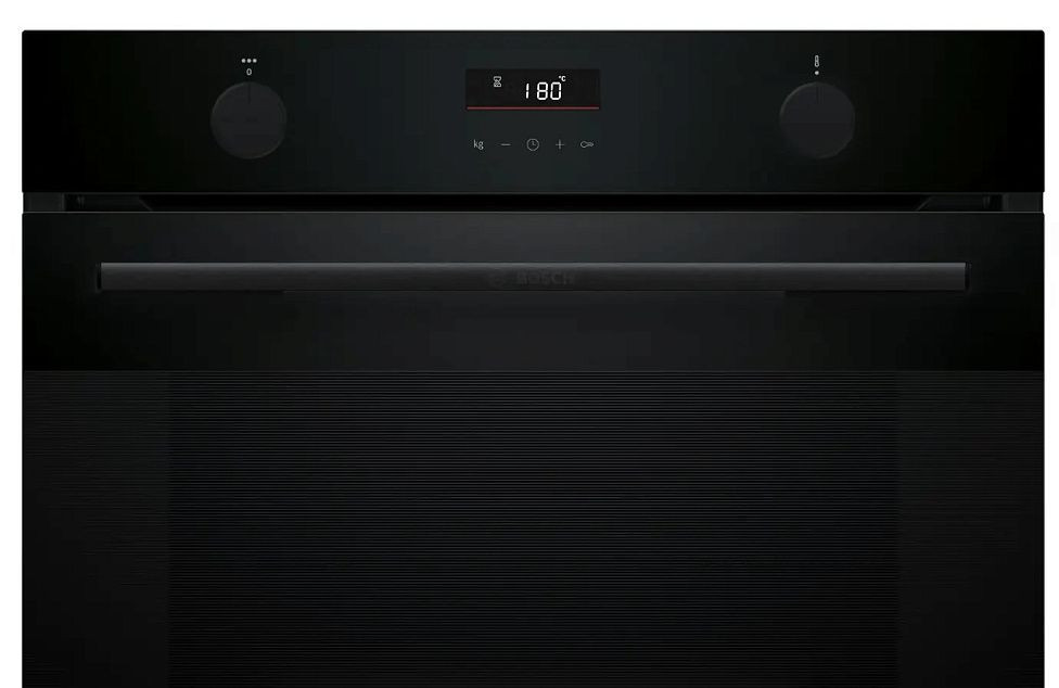 Изящный корпус в черном цвете сочетает современную эстетику и практичность, органично вписываясь в оформление любой кухни и подчеркивая стиль мебели. Передняя панель с TFT дисплеем и комбинированными органами управления — поворотными и сенсорными переключателями — обеспечивает интуитивно понятное управление и аккуратный внешний вид. Откидная дверь с тремя стеклами легко снимается для ухода, а внутренняя подсветка обеспечивает полный обзор приготовления без лишних манипуляций.
