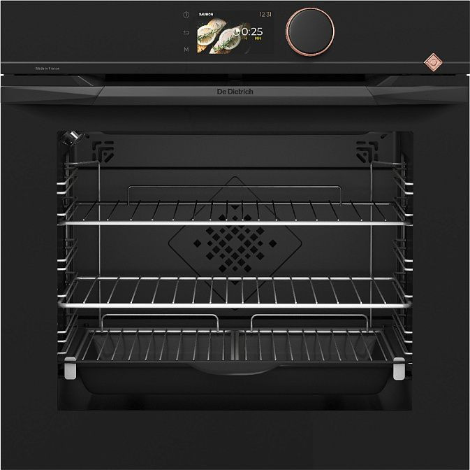 Духовой шкаф De Dietrich DOP4741H — это высокотехнологичное устройство для современной кухни. Он обладает элегантным дизайном в стиле Philharmonie, сочетающим черный и медный цвета. Устройство выполнено из стеклокерамики и чугуна, что обеспечивает его долговечность и надежность. Размеры шкафа составляют 592x592x609 мм, что позволяет его удобно разместить на кухне любого размера.