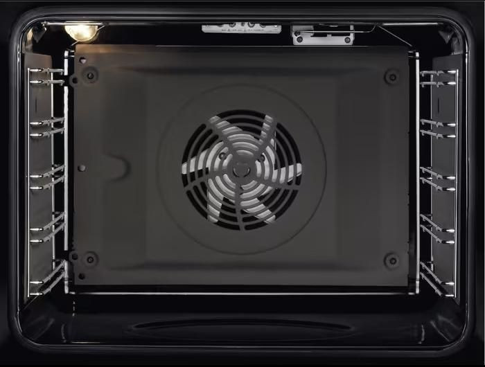 Современный дизайн в глубоком черном цвете подчеркивает минимализм и благородство кухни, гармонично вписываясь в интерьер. Корпус создан для встраивания шириной 56 см и занимает нишу 60x56x55 мм, при этом габариты 594x595x569 мм обеспечивают вместительную камеру объемом 72 л. Передняя панель отличается аккуратным LED дисплеем и сочетанием поворотных, утопленных и сенсорных переключателей, что делает управление одновременно привычным и технологичным. Двухслойная дверца с двумя стеклами и съемным внутренним стеклом гарантирует холодный фронт при закрытии, а откидной механизм позволяет легко загружать противни и решетку.