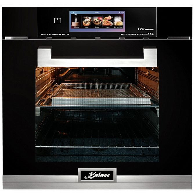 Элегантный встроенный прибор в черном исполнении сочетает современный внешний вид и продуманную эргономику: глубокая камера объемом 79 л скрыта за четырехслойной дверцей с холодным фронтом и съемным внутренним стеклом, что облегчает уход и повышает безопасность. Передняя панель оснащена ярким TFT дисплеем и сенсорными переключателями, интуитивно отображающими режим работы и таймер; на дверце нанесены рецепты, которые помогут в приготовлении различных блюд без лишних накладок. Compact Door поддерживает аккуратный открывающий механизм откидного типа, а внутренняя эмаль легкой очистки делает поверхность менее восприимчивой к загрязнениям.
