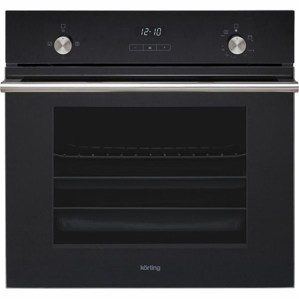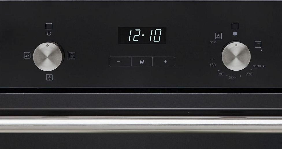 Стильный аппарат в черном стекле сочетает аккуратный минимализм и продуманную эргономику: фасад с LED-дисплеем и металлической ручкой из нержавеющей стали выглядит современно и легко вписывается в любые кухонные гарнитуры. Трехслойная дверь с холодной поверхностью и съемным внутренним стеклом обеспечивает безопасное и комфортное использование, а галогенное освещение камеры делает процесс контроля за готовкой приятным и наглядным. Корпус рассчитан на встраивание в нишу 585x560x560 мм при стандартной ширине встраивания 56-56,8 см, что делает прибор удобным при планировании интерьера.
