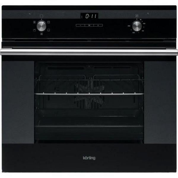 Современный прибор сочетает эффектный внешний вид и продуманную функциональность: фасад из черного стекла и фурнитура из нержавеющей стали создают лаконичный образ для любой кухни, а металлическая ручка обеспечивает надежный захват. Откидная дверца с тройным стеклом и холодной поверхностью защищает от ожогов и сохраняет тепло, а внутренняя камера большого объема на 67 литров позволяет готовить блюда на нескольких уровнях одновременно. Хромированные направляющие съемного типа и телескопическое выдвижение на первом уровне облегчают работу с противнями и решетками, а комплект включает решетку, эмалированный и универсальный противни для разных способов запекания.