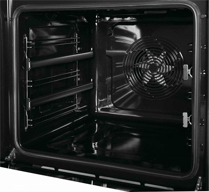 Внутренняя поверхность покрыта эмалью лёгкой очистки, а гидролизная система упрощает удаление загрязнений — достаточно добавить воду и активировать программу очищения. Для удобства эксплуатации предусмотрена лампа освещения камеры, хромированные съемные направляющие с телескопическим выдвижением на первом уровне и эффективная система охлаждения/вентиляции, продлевающая срок службы декоративных элементов. Двухслойная дверца с откидным механизмом и двумя стеклами удерживает тепло внутри, а ручка из нержавеющей стали устойчива к коррозии и легко моется.