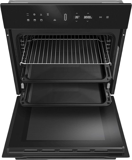 Духовой шкаф оснащен электронным типом управления, что обеспечивает точность и удобство настройки режимов работы. Сенсорные переключатели делают процесс управления еще проще и комфортнее. На дисплее отображается все необходимое: текущий режим работы, температура и время до отключения. Также есть таймер, который позволяет точно контролировать время приготовления.