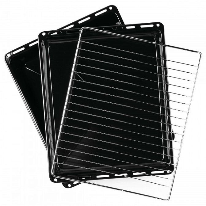 Удобство обслуживания обеспечено эмалью легкой очистки и каталитическими элементами для снижения налета жира; комплект включает два противня — мелкий и глубокий — и сетевой шнур с вилкой для подключения. Охлаждение с вентилятором защищает фасад и механизмы при интенсивном использовании, а система автоотключения и таймер с функцией отключения повышают уровень безопасности и комфорт.