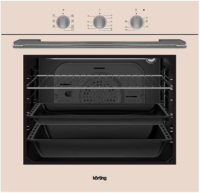 Этот встроенный электрический прибор сочетает в себе сдержанную элегантность и продуманную функциональность, что делает его удачным выбором для кухни в бежевых тонах или в интерьере с теплой палитрой. Фронтальная поверхность выполнена из стекла, а ручка и фурнитура — из нержавеющей стали, что придает прибору аккуратный современный облик и обеспечивает долговечность рабочих частей. Утапливаемые поворотные регуляторы с полиамидно-металлическими элементами выгодно интегрированы в панель, сохраняют минимализм и предотвращают случайное включение. Форма корпуса с типовыми габаритами 595x595x587 мм подходит для ниши размером 600x560x550 мм, а масса 29 кг облегчает установку независимой модели.