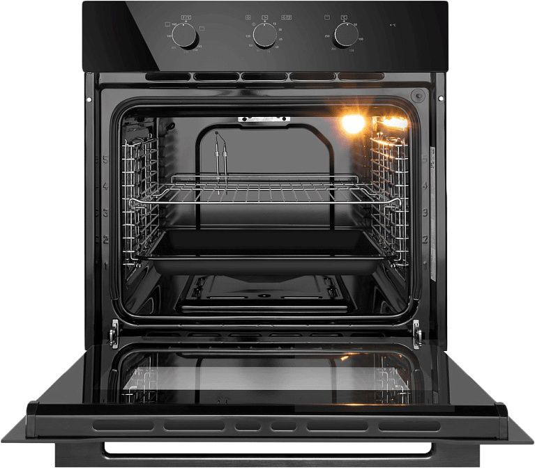В комплекте с духовкой идут решетка, стандартный противень, глубокий противень и документация. Все это помещается в упаковку размером 67x69x66 см и весом 32 кг.