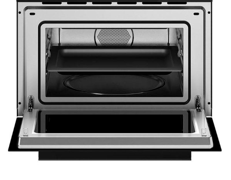 Строгая геометрия и глубокий черный тон стекла создают выразительный акцент на кухне, сочетая минимализм и премиальную эстетику. Плоская фасадная поверхность визуально увеличивает пространство и подходит для встраивания в мебель с шириной 59,5 см; высота 38,8 см и глубина 40,1 см делают корпус компактным, но вместительным. Внутренний объем 25 л размещает стандартную посуду, а диаметр поворотного стола 31,5 см оптимизирован для равномерного прогрева. Корпус и камерная поверхность выполнены с применением нержавеющей стали внутри, что обеспечивает долговечность, простоту ухода и устойчивость к пятнам, сохраняя презентабельный вид при регулярном использовании.
