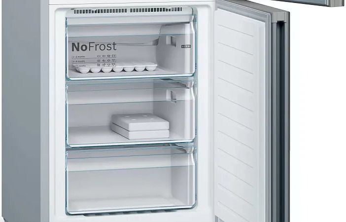 Внутреннее пространство организовано с прицелом на удобство ежедневного использования: регулируемые по высоте выдвижные стеклянные полки EasyAccess упрощают доступ к продуктам, а четыре дверных отсека и специальная подставка для бутылок на 17 мест обеспечивают порядок и рациональное хранение. Зона свежести с двумя выдвижными ящиками поддерживает оптимальную влажность для овощей и фруктов, есть отдельный отсек для яиц и лоток для льда. Холодильная и морозильная секции работают по системе NoFrost, поэтому ухаживать за прибором проще — разморозка не требуется.