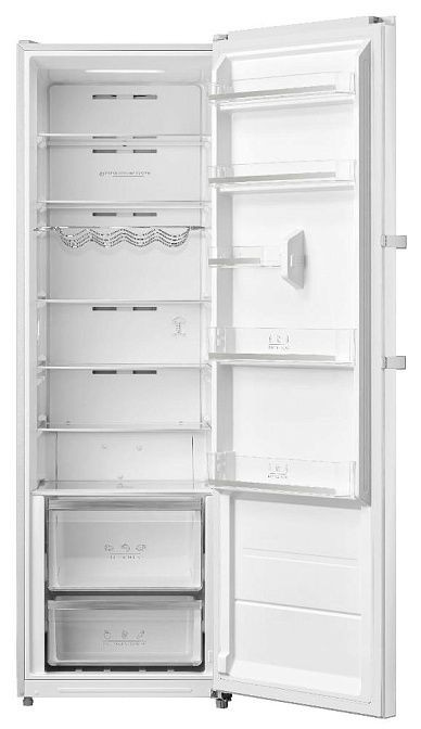 Внутреннее наполнение организовано для рационального хранения: шесть выдвижных стеклянных полок коричневого цвета и выдвижные контейнеры сформируют систему, удобную для овощей, фруктов и напитков. Есть отдельная зона свежести с регулируемой влажностью и пластиковыми отделениями, подставка для яиц и металлическая полка для бутылок, что делает хранение крупногабаритных предметов простым и безопасным. Наличие литых направляющих и регулируемых ножек позволяет адаптировать расположение полок под разные задачи, а встроенный вентилятор обеспечивает равномерное распределение температуры по камере.