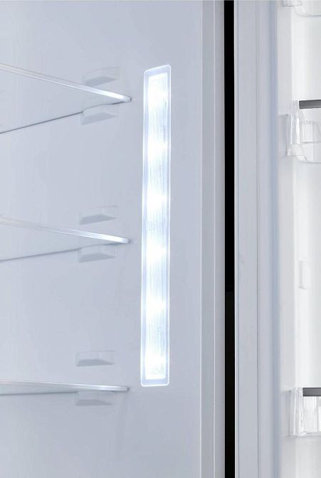 Удобство использования дополнено возможностью перенавешивания дверей и дверным упором Side by Side, что упрощает интеграцию в любую конфигурацию кухни; предусмотрена звуковая и оптическая индикация неисправностей, сигнал открытой двери и память аварийной температуры для защиты продуктов при перебоях электроснабжения. Внутреннее освещение на светодиодах создает комфортную видимость, а комплект поставки включает металлическую полку для бутылок, лоток для льда, подставку для яиц и необходимую документацию. При объемах 351 литр и полезном холодильном объеме 257 литров модель размещает до 56 бутылок, при этом морозильное отделение обеспечивает до 94 литров и минимальную температуру до _24 °C; годовой расход электроэнергии соответствует классу A+ с показателем 320 кВт·ч/год. Аппарат на классическом компрессоре с хладагентом R600A, весом 67 кг и габаритами 200x59,5x63,5 см сочетает презентабельность, технологичность и практичность для хранения широкого спектра продуктов и напитков.