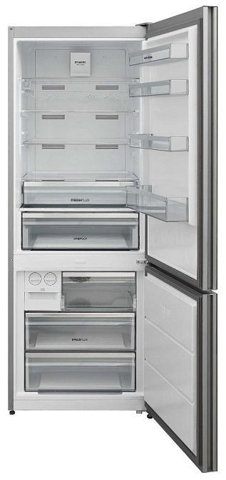- Full No Frost в обеих камерах обеспечивает отсутствие инея и удобство эксплуатации без ручной разморозки.