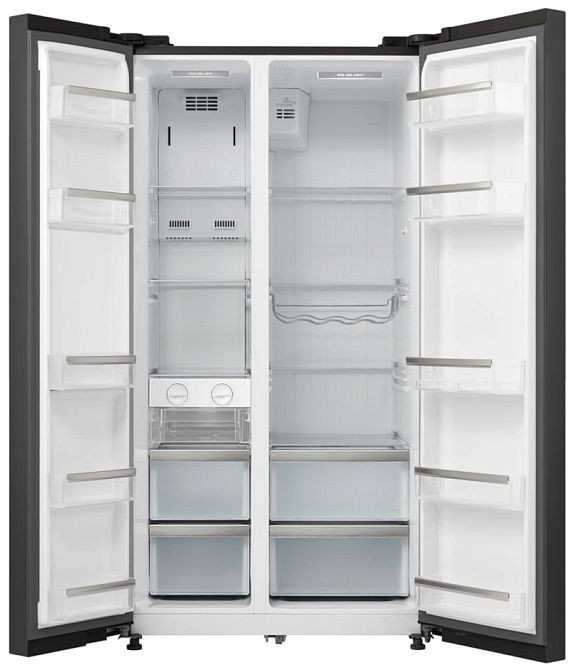 Эта модель представляет собой современную side-by-side систему с выразительным стеклянным фасадом в черном цвете и стальными боковинами, которая органично впишется в интерьер кухни в стиле Pure. Фронтальная поверхность выполнена из гладкого стекла с обработкой против отпечатков пальцев, а скрытые ручки и полноразмерная цилиндрическая рукоять создают аккуратный минималистичный облик и удобство эксплуатации. Монтаж двери реализован по системе door on door, что облегчает установку в мебельную нишу и позволяет поставить прибор вплотную к стене.