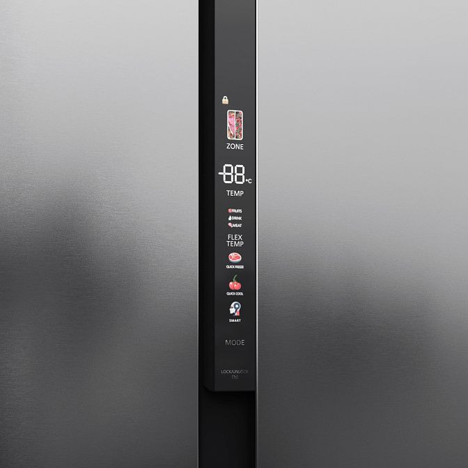 Управление холодильником осуществляется с помощью электронной системы и сенсорных кнопок. Пользователь может регулировать температуру в холодильной и морозильной камере, а также использовать функции суперохлаждения и суперзамораживания. Холодильник оборудован тремя регулируемыми полками из стекла в холодильной камере, отделением для бутылок и подставкой для яиц.