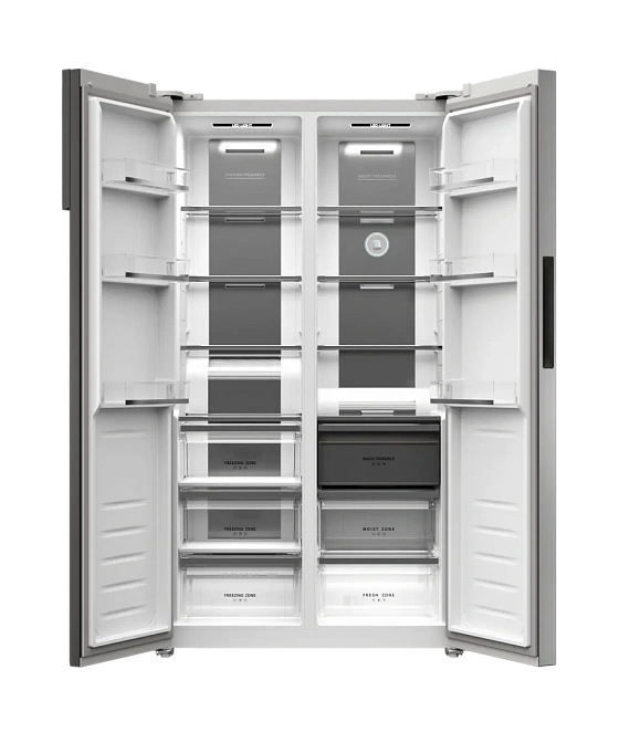 Особенностью данной модели является электронная система управления с сенсорными кнопками. Холодильник оснащен функциями суперохлаждения и суперзамораживания, что позволяет быстро охладить или заморозить продукты. В морозильной камере расположены 3 ящика, что позволяет удобно разместить продукты. Важной особенностью является наличие антибактериального покрытия камеры, что обеспечивает безопасность хранения продуктов.