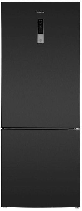 Строгий и современный образ техники сочетает черную нержавеющую сталь фронта с матовой металлической отделкой корпуса, создавая эффектную, но сдержанную внешность. Скрытые ручки и ровные поверхности подчеркивают минималистичный стиль, а вертикальная панель управления с сенсорными кнопками на дверце добавляет визуальной легкости и удобства в эксплуатации. Продуманная компоновка при габаритах 185,5x70,3x70,3 см обеспечивает внушительный полезный и общий объем для хранения продуктов, при этом прибор остается отдельно устанавливаемым и легко интегрируется в разные кухонные решения благодаря перевешиваемым дверцам и регулируемым ножкам.