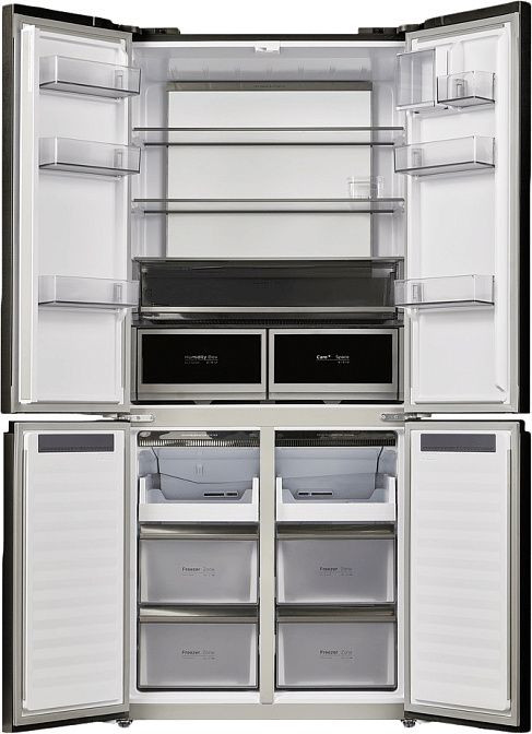 Один из ключевых аспектов этого холодильника — его просторность. С общим объемом 537 литров, включая 330 литров холодильной камеры и 168 литров морозильной камеры, он предлагает достаточно места для хранения большого количества продуктов. Три камеры позволяют удобно разместить все необходимые продукты, а размораживание No Frost обеспечивает их свежесть и сохранность.