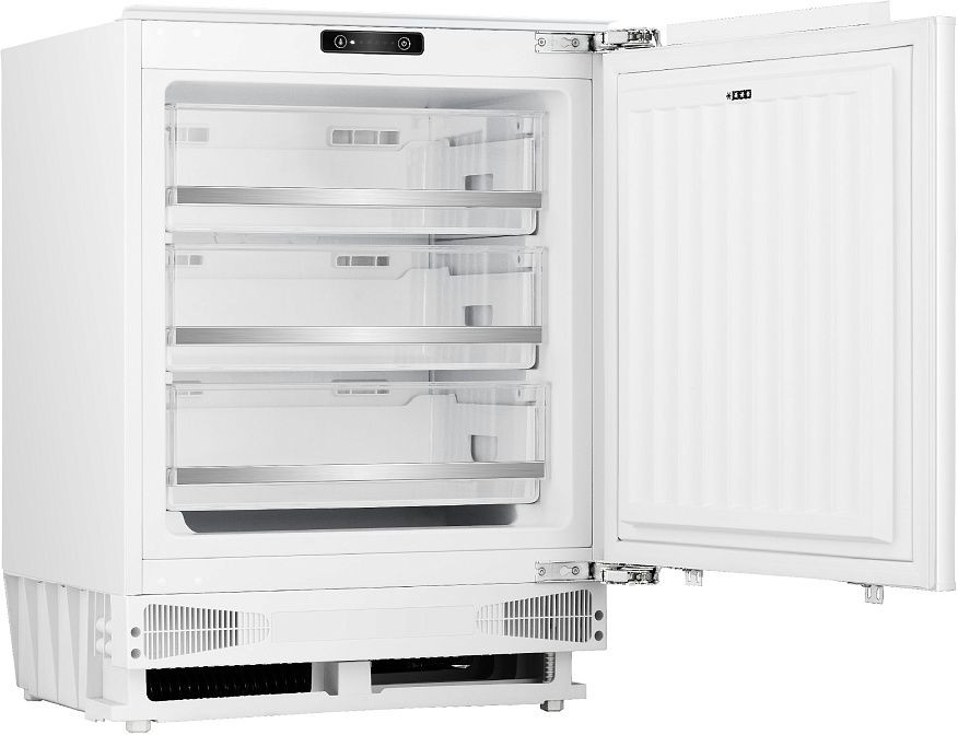Внутреннее пространство продумано для рационального хранения продуктов: общий полезный объем морозильной камеры составляет 83 л, разделенный на три выдвижных ящика и две стационарные полки, что облегчает сортировку продуктов и доступ к ним. Для быстрого закрепления низких температур предусмотрена функция суперзаморозки, а режим NoFrost полностью исключает образование инея, освобождая от необходимости ручной разморозки. Минимальная рабочая температура в морозильном отсеке достигает _24 °C, а автономное сохранение холода при отключении электричества — до 11 часов, что повышает надежность при любых непредвиденных ситуациях.