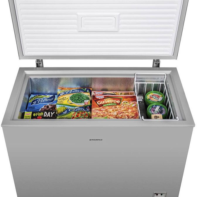 Морозильный ларь Maunfeld MFL200GR — оптимальное решение для качественного замораживания и хранения продуктов, объемом 199 литров. Отдельностоящий прибор можно легко переместить с места на место. Его параметры составляют: высота — 82 см, ширина — 98 см, глубина — 56 см. Устройство оборудовано одной вместительной камерой и навесной корзиной, которая обеспечивает дополнительное удобство при расположении продуктов.