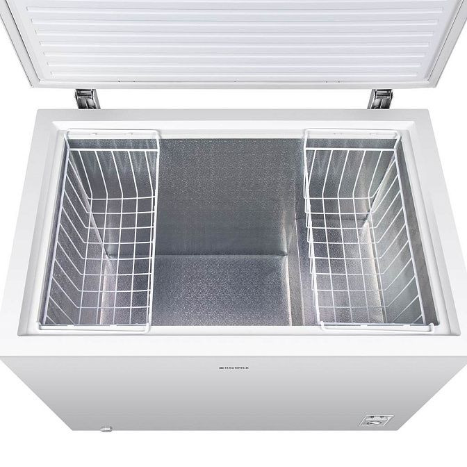 Морозильный ларь Maunfeld MFL300W — это вместительная однокамерная модель от известного и надежного производителя. Изделие выполнено в классическом белом цвете, что обеспечивает его гармоничную интеграцию в большинство интерьеров. Этот отдельностоящий прибор станет оптимальным решением для качественного хранения продуктов. Высота модели составляет 83.5 см, ширина — 105.5 см, глубина — 69 см. Высокий класс энергоэффективности A+ гарантирует экономичное потребление электроэнергии. Для удобной организации хранения предусматриваются подвесные корзины. Управление прибором происходит с корпуса, при помощи поворотного регулятора. Красный свет индикатора показывает, что техника работает, а зеленый — что функционирует компрессор. Тихая работа морозильного ларя Манфелд MFL300W — еще одно преимущество устройства. Максимальные показатели составляют 42 дБ. Перед началом эксплуатации необходимо ознакомиться с инструкцией, которая входит в комплект поставки.