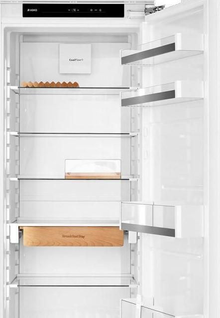 Внутренняя организация разделена на одну основную морозостойкую секцию и нижний отсек для заморозки: полезный объем достигает 300 л, из которых 181 л отведено под охлаждение и 44 л — под морозильные ячейки. Система циркуляционного охлаждения CoolFlow+™ с ионизатором поддерживает стабильную температуру и свежесть, дополнительно предусмотрена зона свежести DuraFresh™ с независимым температурным режимом для сохранения текстуры и аромата продуктов. Холодильная камера оснащена стеклянными полками пятью уровнями расположения и пятью полками на двери, большой выдвижной ящик на телескопических направляющих и отделение для бутылок, обеспечивая удобный доступ и рациональную укладку.