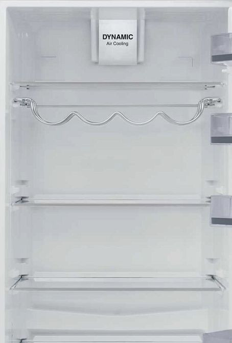 Система охлаждения динамическая в тандеме с технологией No Frost в обоих отделениях исключает образование наледи и устраняет необходимость ручной разморозки, а функция суперохлаждения и режим суперзамораживания обеспечивают быструю фиксацию свежести и текстуры продуктов. Эффективная работа обеспечивается одним компрессором, поддерживающим стабильный температурный режим при низком уровне шума до 41 дБ; прибор соответствует климатическому классу SN-T, поэтому надежно функционирует в диапазоне от +10 до +43°C. Электронное управление с цифровыми настройками расположено на корпусе и позволяет гибко регулировать параметры в холодильном и морозильном отделениях, включая автономное сохранение холода до 19 часов и звуковую сигнализацию при открытой двери.