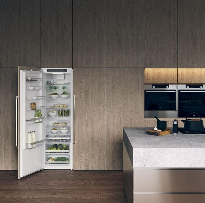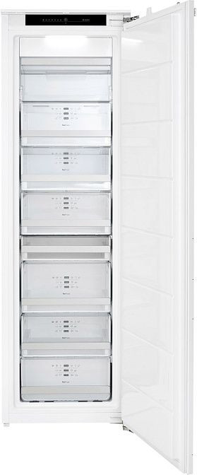 Габариты морозильника составляют 177.2 см в высоту, 55.5 см в ширину и 54.5 см в глубину. Размер ниши для установки устройства должен быть 177.5-178x56-57x56 см. Этот встраиваемый морозильник обладает общим полезным объемом 212 литров, что позволяет хранить большое количество продуктов.