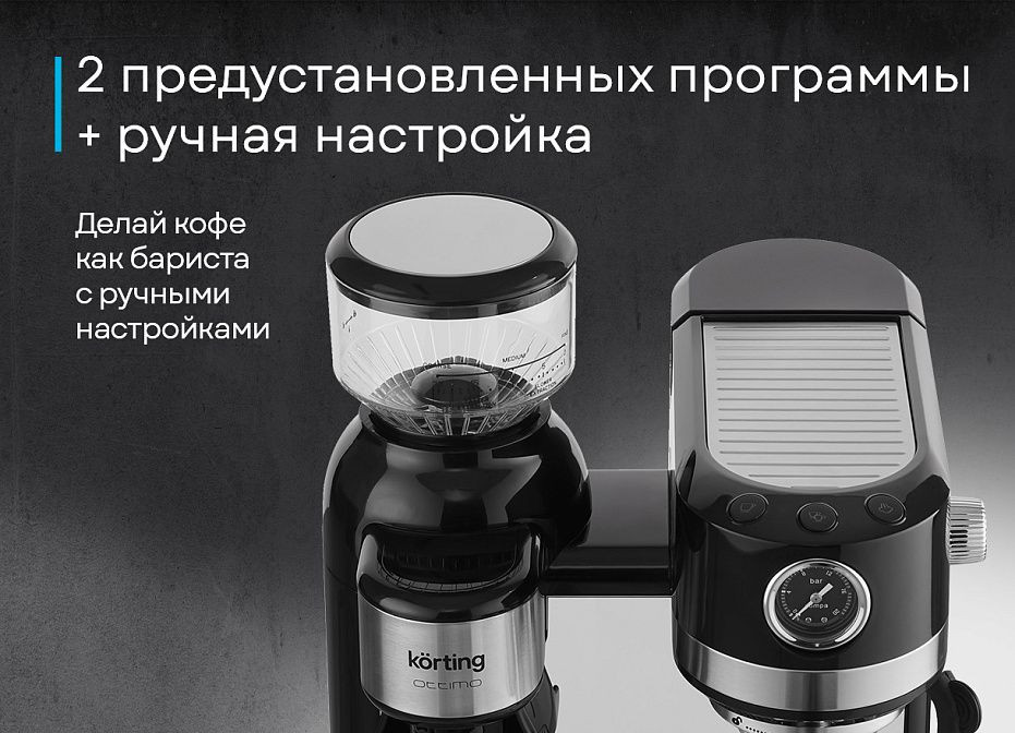 - Встроенная коническая жернова с 15 степенями помола и 5 уровнями крепости гарантируют стабильный вкус для любой рецептуры.