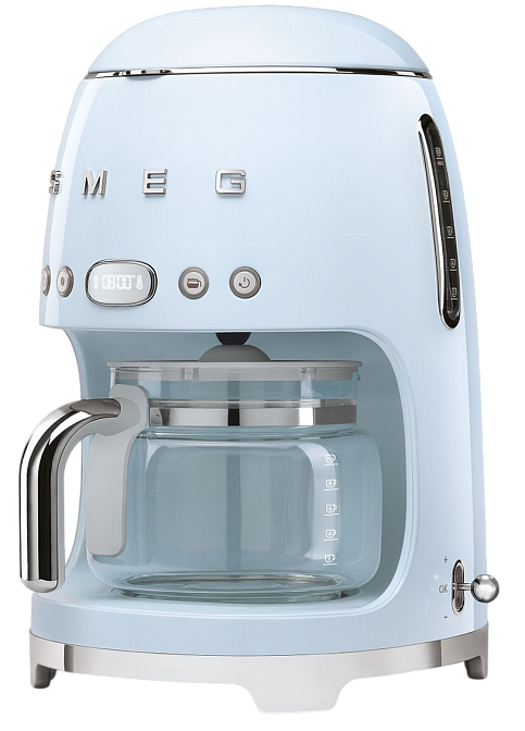 Кофеварка Smeg DCF02PBEU представляет собой идеальное сочетание элегантного дизайна и высокой функциональности. Эта модель выполнена в стиле 50-х годов, что придает ей неповторимый шарм и позволяет вписаться в любой интерьер. Пастельный голубой цвет корпуса, сделанного из металла и пластика, подчеркивает ее изысканность и стиль.