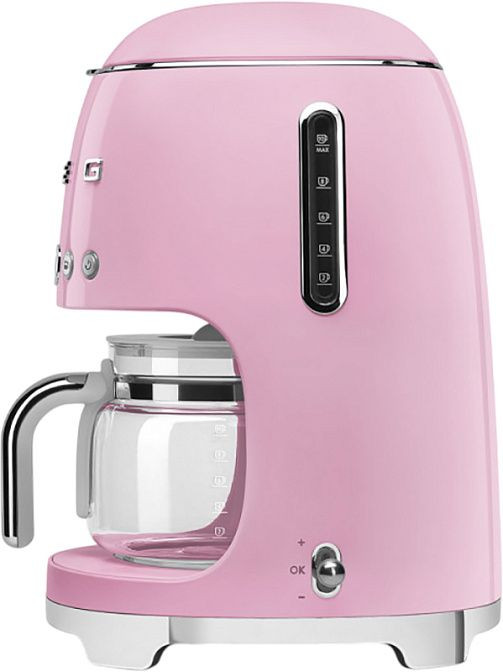 Кофеварка SMEG DCF02PKEU оснащена сенсорными переключателями и дисплеем, что делает управление ею максимально простым и удобным. В комплект поставки входят различные принадлежности, включая встроенный электрический шнур, сетчатый фильтр, лоток для чашек и мерную ложку.