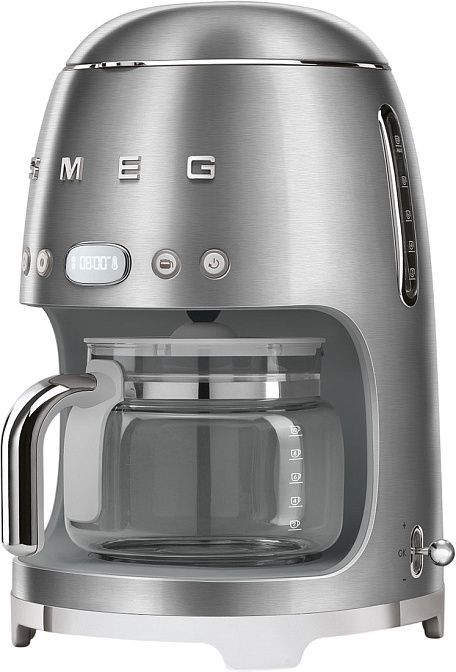Кофеварка SMEG DCF02SSEU — это стильное и функциональное устройство, которое станет незаменимым помощником для любителей кофе. Дизайн кофеварки выполнен в стиле 50-х годов, что придаёт ей особую эстетическую привлекательность и позволяет вписаться в любой интерьер. Корпус изготовлен из комбинации металла и пластика, что обеспечивает долговечность и надёжность устройства. Цвет нержавеющей стали придает ей современный и элегантный вид.