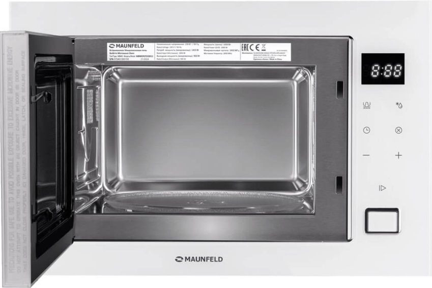Микроволновая печь Maunfeld MBMO.925SGW.11 — это отличное решение для тех, кто ценит качество, функциональность и стиль в бытовой технике. Устройство выполнено в современном дизайне, который легко впишется в любой интерьер кухни. Белый цвет корпуса придает ему элегантность и легкость, а панель управления, расположенная на корпусе, делает использование печи максимально удобным и простым.