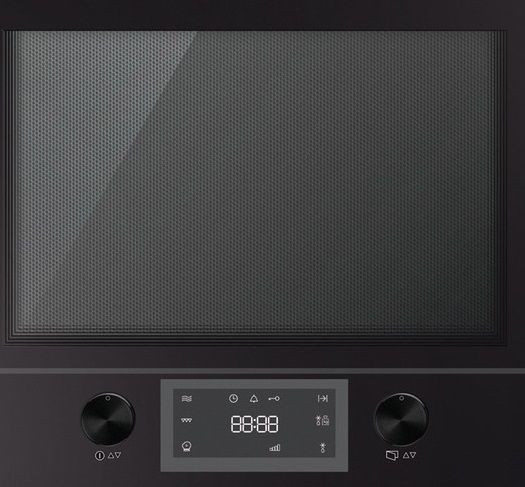 Элегантный встраиваемый прибор выполнен в черном стекле с аккуратной цифровой панелью и поворотными переключателями, создавая сдержанный, современный облик для любой кухни. Дверца навесного типа со скрытой сенсорной системой открытия и двумя слоями стекла с металлической сеткой на внутренней поверхности обеспечивает безопасность и защищает от лишнего излучения, при этом дверной упор расположен слева для удобства монтажа и эксплуатации. Компактные наружные габариты 39x59,5x33,4 см и рекомендуемый размер ниши 370—380x568x320 мм позволяют установить прибор в стандартный шкаф, а ширина встраивания 56,8 см упрощает подбор меблировки.