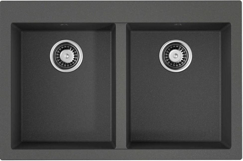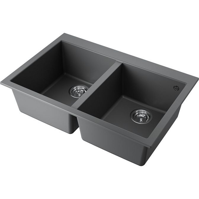 Врезной монтаж для тумбы 85 см. Габариты 800x500x200 мм, толщина 10 мм. Чаши 360x420x200 мм каждая. Двойной выпуск 90 мм.