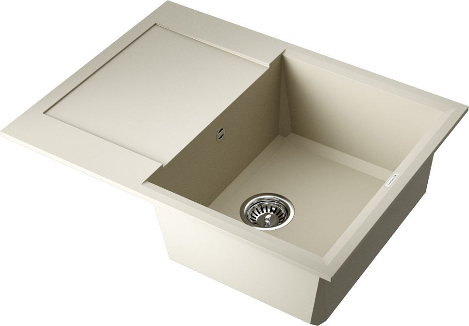 Модель имеет одну основную чашу размером 338x430x230 мм и глубиной 230 мм, что обеспечивает достаточное пространство для мытья посуды различных размеров. Дополнительная чаша глубиной 120 мм идеально подходит для мелкой посуды или продуктов. Обе чаши имеют матовое покрытие, что придает им стильный вид и облегчает уход за ними.