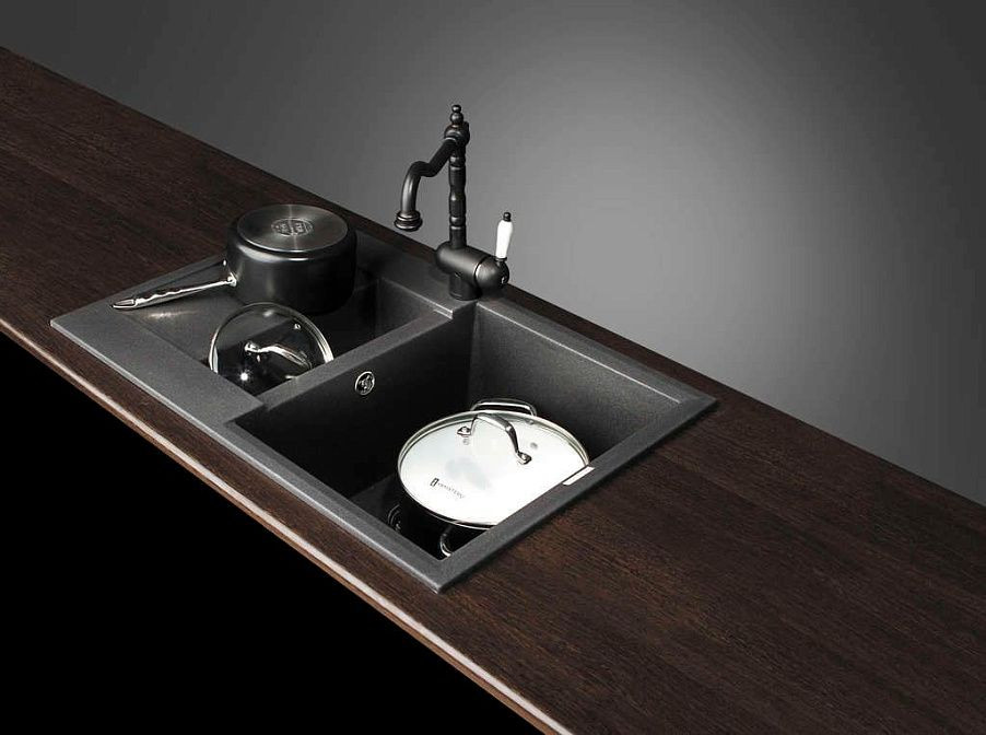 Прямоугольная форма мойки идеально вписывается в современные кухонные пространства. Модель устанавливается накладным способом, вровень со столешницей, что создает гладкую и стильную поверхность. Два просторных отсека позволяют удобно распределить посуду для мойки и сушки. Основная чаша имеет размеры 360x430x220 мм, а дополнительная — 120x330x120 мм. Такое разделение позволяет экономить воду и эффективно использовать пространство.