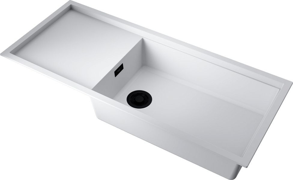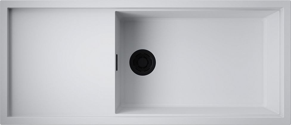 Основная чаша 662x419x200 мм + вторая чаша 1140x480 мм обеспечивают максимальную функциональность. Диаметр слива 90 мм с креплением для сифона. Оборачиваемое крыло с сливными желобками создает удобную рабочую зону.