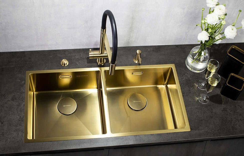 Компактные 2 чаши оптимизируют рабочее пространство. Сочетается с современными стилями. Уход: мягкая губка + средства для нержавейки.
