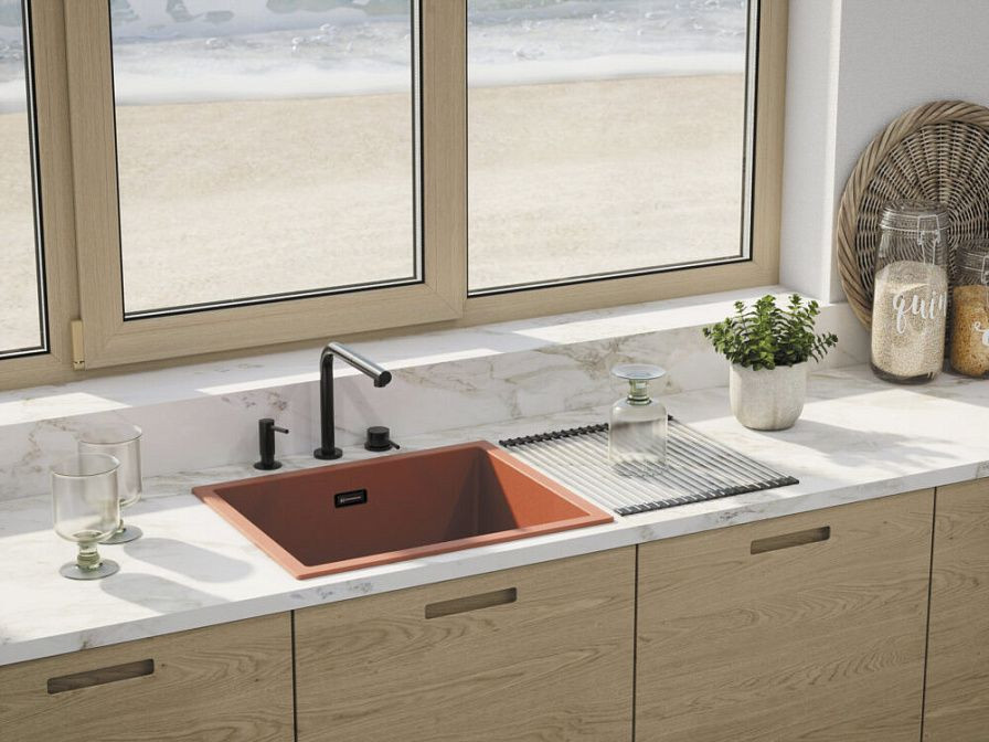 Кухонная мойка Omoikiri Yamakawa 55 UI CN ArtCeramic Canyon — компактная одночашевая керамика итальянского производства для малых кухонь (арт. 4997033). Размер 556x456x220 мм идеально подходит для базы 60 см. ArtCeramic — композитная керамика толщиной 6 мм из закаленной керамики и акрила. Глубокая чаша 500x400x200 мм вмещает крупную посуду — противни, утятницы, казаны. Глянцевая поверхность устойчива к царапинам, пятнам, температурам до 280°C, кислотам, щелочам.