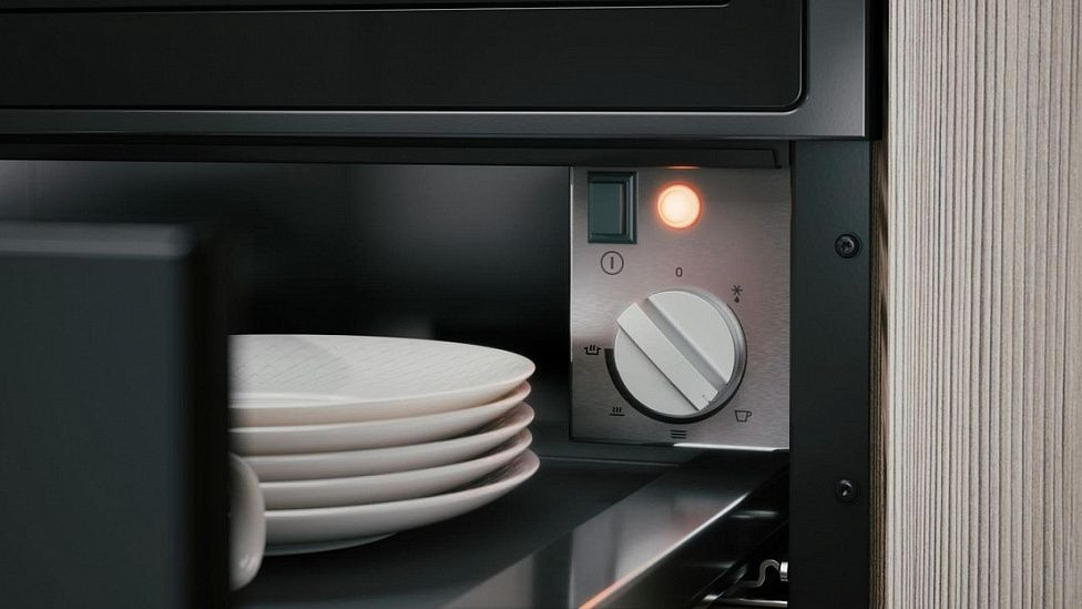 Управление реализовано механическим блоком с информативным дисплеем на корпусе, который служит для выбора одного из четырёх температурных режимов в диапазоне от 30 до 80°С и установки таймера; такие настройки пригодны для аккуратного прогрева фарфора, поддержания оптимальной температуры сервировки и медленного приготовления при низкой температуре. Наличие режима размораживания и интенсивного режима расширяет практические возможности, позволяя использовать прибор не только для подогрева, но и для кратковременной обработки деликатных блюд и посуды. Регулировка температуры осуществляется плавно, что минимизирует риск перегрева и сохраняет эстетичный вид стеклянных и керамических предметов.