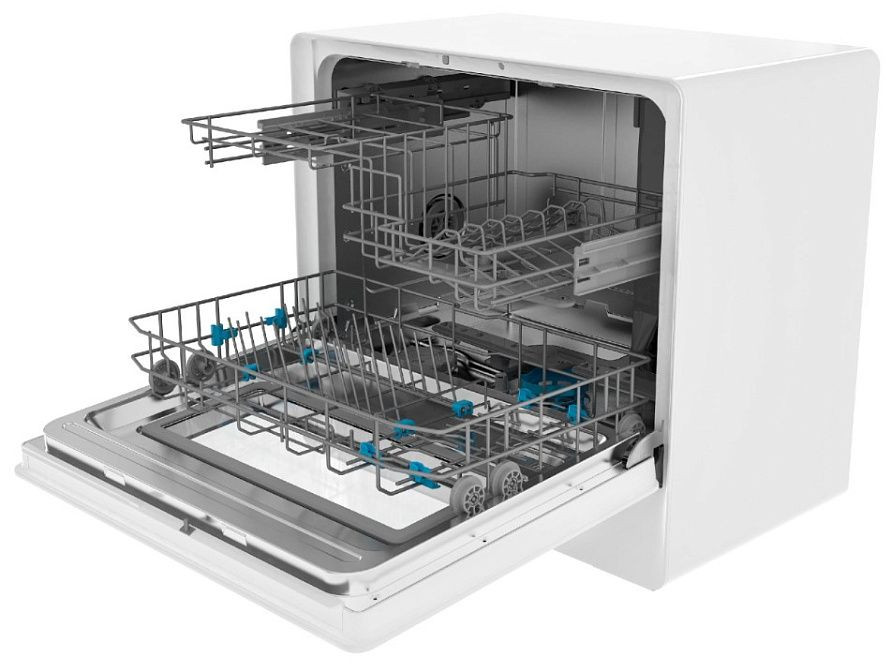 Техника оснащена системой полной защиты от протечек и блокировкой от детей для безопасной круглосуточной работы, проточный нагреватель обеспечивает быстрый разогрев, а встроенная сервисная диагностика и функции самоочистки конденсатора упрощают обслуживание. Механизм регулировки полок, разнообразие температурных режимов (45—65°C), пять уровней разбрызгивания и четыре разбрызгивателя гарантируют качественное удаление загрязнений, а максимальный уровень шума 58 дБ делает работу относительно тихой. Комплект поставки включает посудомоечную машину и документацию, гарантия — 24 месяца.