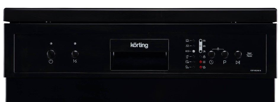 Стильный корпус в черном цвете и аккуратная панель из нержавеющей стали создают современный образ, который гармонично впишется в разные интерьеры. Плоская лицевая панель с открытой панелью управления и цифровым дисплеем обеспечивает удобный доступ ко всем функциям: выбор программы, таймер, индикация наличия ополаскивателя и соли читаются легко благодаря ярким LED-индикаторам. Корпус рассчитан на отдельностоящую установку, но модель также подходит для полного встраивания в нишу размером 82—90x60x56 см, что дает свободу планировки кухни и позволяет скрыть прибор под столешницей при необходимости.