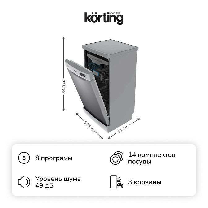 - Вместимость в 14 комплектов посуды.