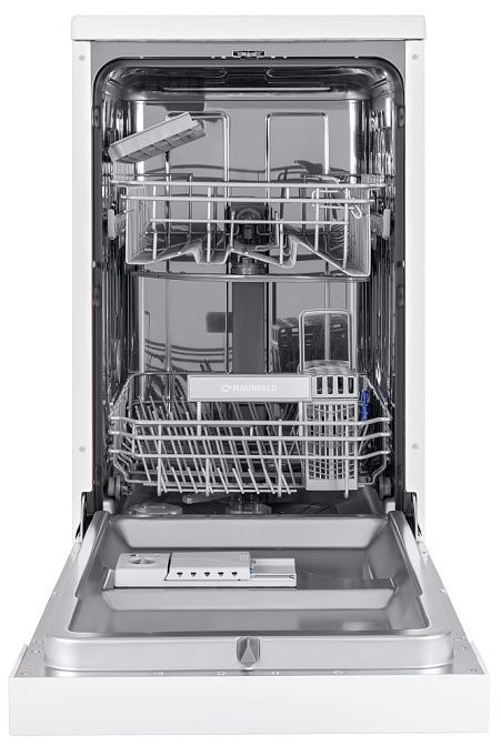 Элегантный белый корпус этой модели сочетает компактность и практичность: узкая конструкция 45 см идеально вписывается в малогабаритную кухонную нишу, а металл внешней панели и нержавеющая внутренняя камера гарантируют долговечность и солидный внешний вид. Цифровой дисплей на панели позволяет отслеживать выбранные режимы и оставшееся время цикла, а открытая панель управления с механическими элементами обеспечивает интуитивный выбор параметров. Раздвижная крышка дозатора и система автоматического дозирования ополаскивателя улучшают распределение моющего средства, сокращая необходимость ручной подправки при каждом запуске.