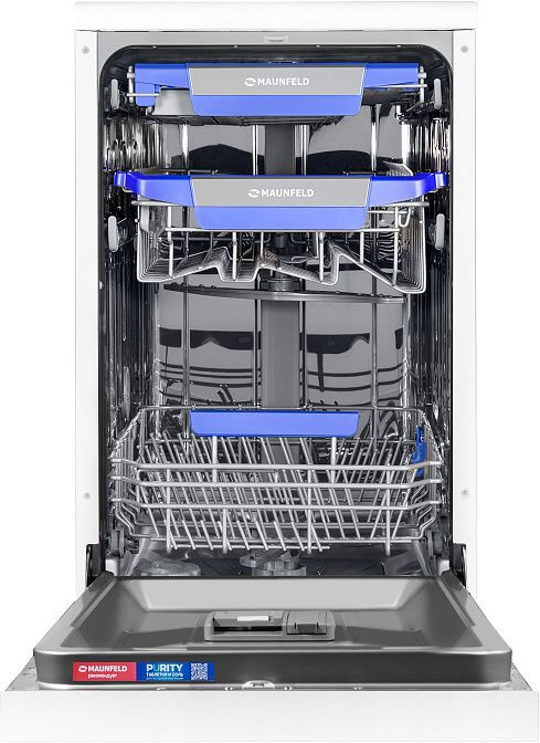 Безопасность эксплуатации усилена комплектом защитных функций: автоматическое отключение, блокировка от детей и система AquaStop, защищающая от протечек. Устройство оборудовано проточным водонагревателем и системой водоумягчения, есть сенсор чистой воды и автодозирование моющего средства, что повышает качество полоскания и экономит средства. Три распылителя на разных уровнях обеспечивают равномерное распределение струй, а наличие верхнего разбрызгивателя и трех уровней интенсивности подачи воды гарантирует тщательное удаление загрязнений.
