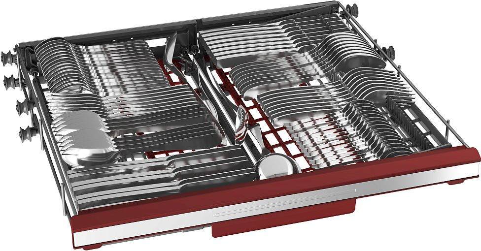 - Продуманная внутренняя организация на три уровня с регулируемыми корзинами и съемными лотками для столовых приборов.