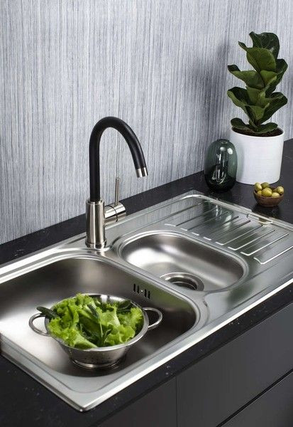 Установка смесителя производится на мойку, что упрощает его установку и эксплуатацию. Он имеет одну основную чашу размерами 450x400 мм и глубиной 195 мм, а также дополнительную чашу. Такое количество чаш позволяет использовать смеситель максимально эффективно, удовлетворяя все потребности в воде на кухне.