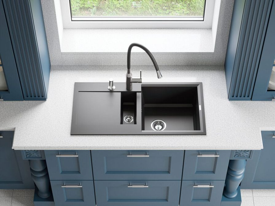 При установке на мойку он идеально вписывается в любой интерьер, а его размеры — 450x400 мм — позволяют удобно разместить его даже на небольшой кухне. Основная чаша имеет глубину 195 мм, что обеспечивает достаточно места для мытья посуды разного размера.